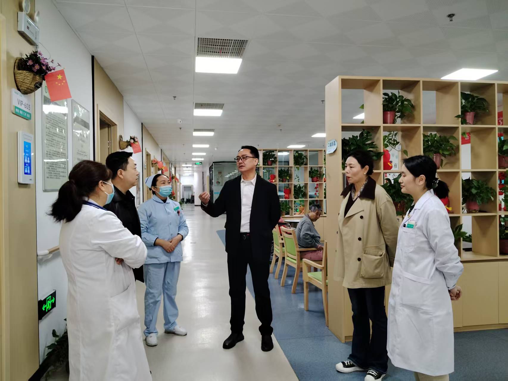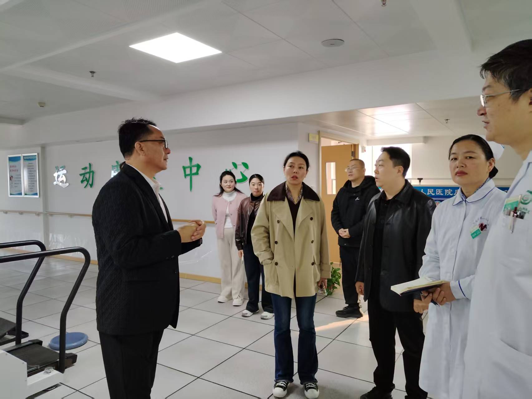 在院方领导的陪同下,调研组重点参观了医院特色科室——医养服务中心。该中心融合医疗康复与养老服务,开设中医理疗室、康复训练区、智慧养老监护平台等功能单元。郭玉伟书记详细询问了中心对中医技术(如针灸、推拿、药膳调理)的应用情况,并对中医药在老年慢性病管理、情志调摄等方面的独特优势表示高度认可。张晓丽副书记向院方精准推介了中医专业毕业生情况,并针对“中医适宜技术在社区养老中的应用”“智慧健康管理岗位能力要求”等议题展开研讨。